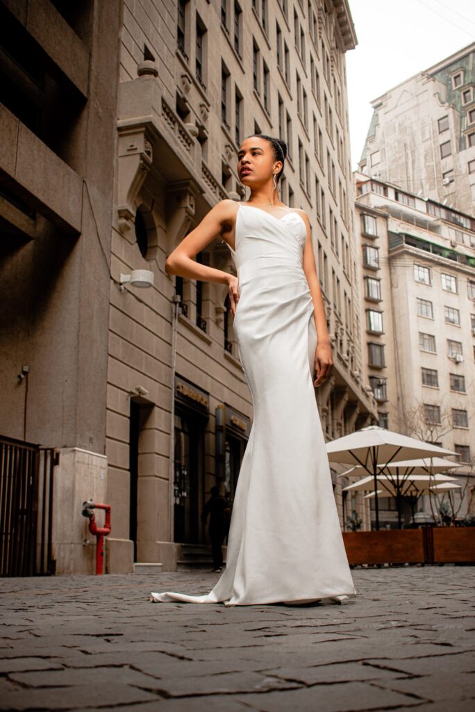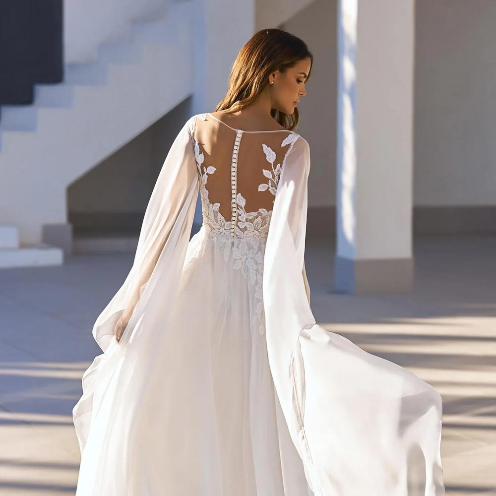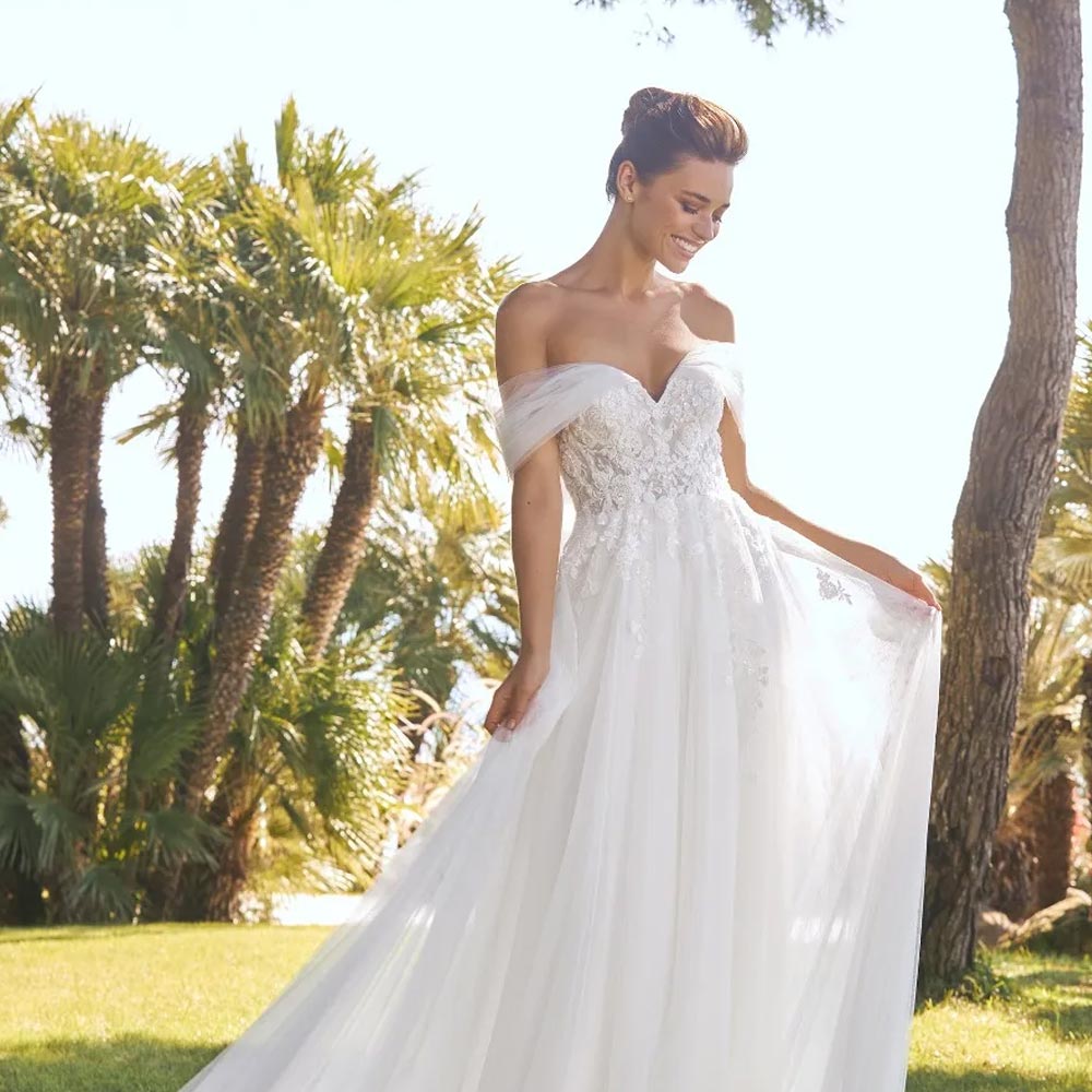 Una elección atemporal y elegante, perfecta para la novia tradicional que desea un look clásico en su día tan especial.